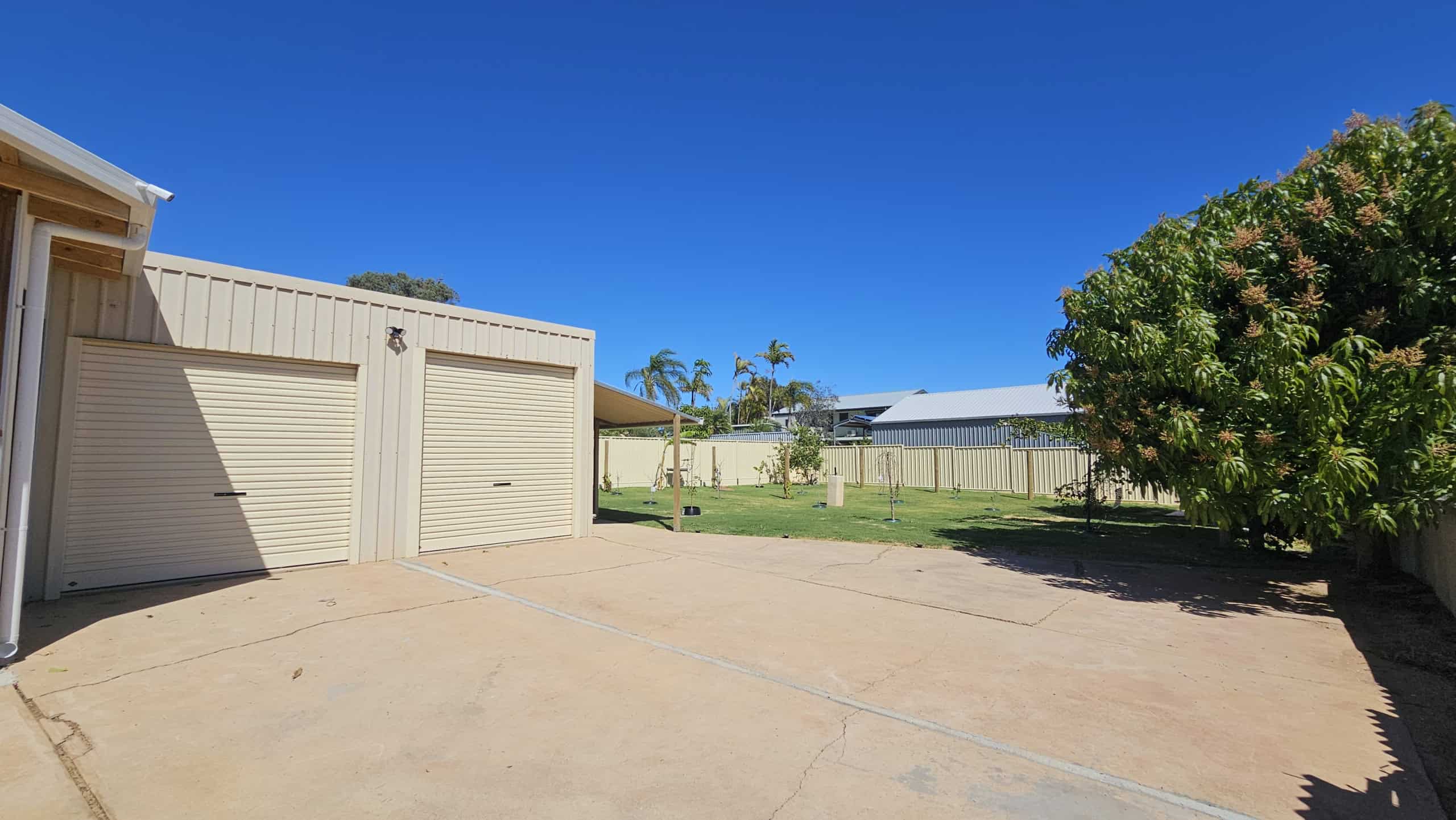 Shed & Parking: 2 door shed with cyclone-rated roller doors + lean-to on side 1. Undercover parking at the front of both sides.