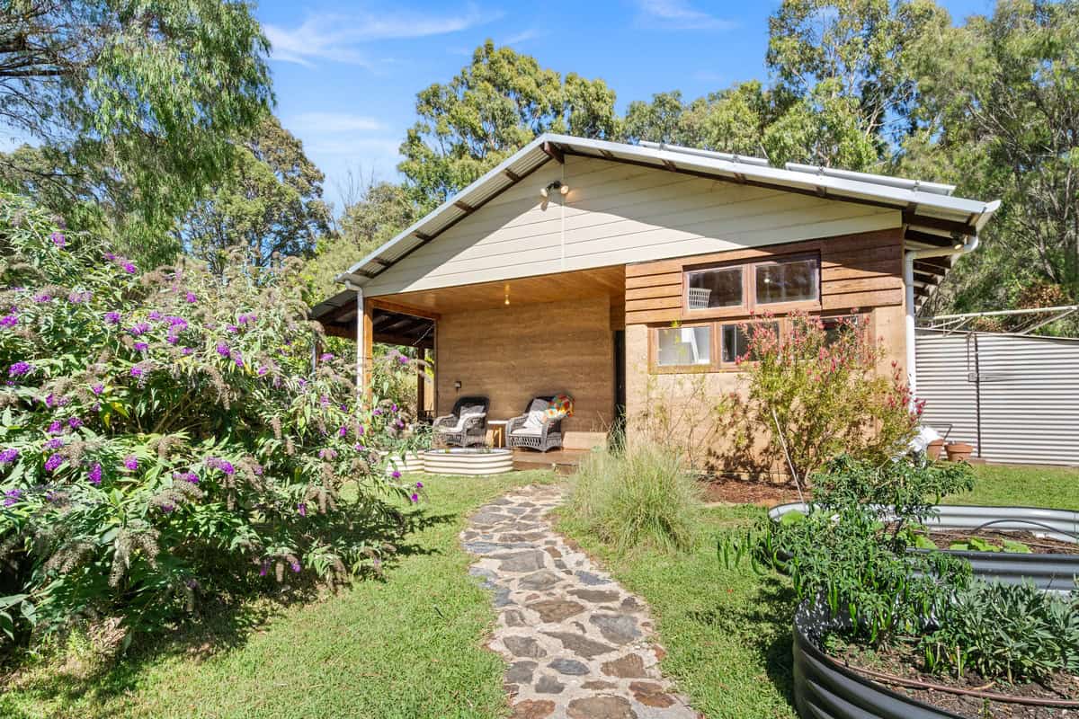 In the heart of Witchcliffe yet wrapped in a peaceful bush setting directly opposite national parkland, this handcrafted rammed earth home sits on a generous 1,011 sqm block where every detail speaks of place. Thick earthen walls, hand-finished timber joinery throughout, and an effortless connection between indoors and garden create something genuinely rare, a home with real substance, just nine kilometres south of Margaret River and minutes from Redgate Beach and the caves and karri forests of the Leeuwin-Naturaliste National Park.